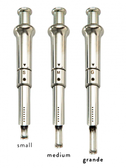 Snogo SMGは、S、M、Gの3段階の用量設定ダイヤルを備えています。