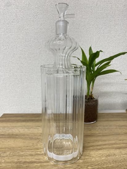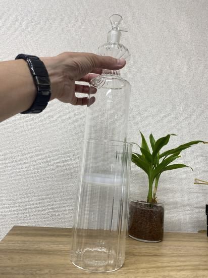 外側の大きいの瓶に水を入れ、火を付けると同時に中の瓶を持ち上げます。